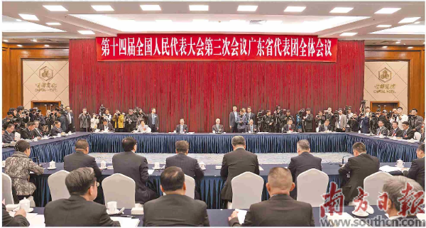 3月6日,十四屆全國人大三次會議廣東代表團舉行開放團組活動。圖片來源:南方日報