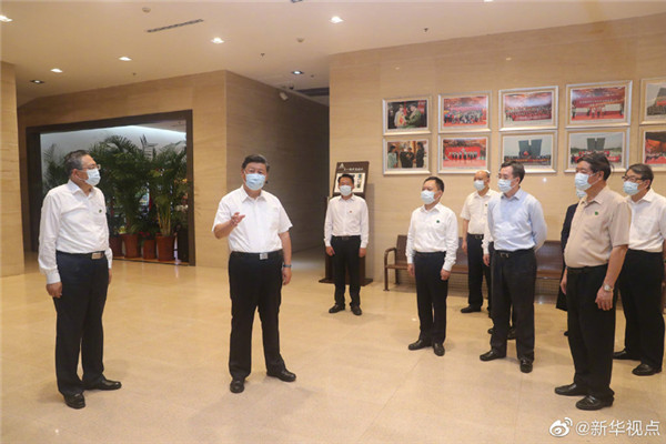 習近平總書記19日下午在安徽省合肥市考察調研。他在肥東縣十八聯圩生態濕地蓄洪區巢湖大堤羅家疃段,察看巢湖水勢水情,看望慰問防汛抗洪一線人員、先進典型代表和參加抗洪搶險的解放軍、武警部隊官兵。當天下午,習近平在合肥還參觀了安徽創新館和渡江戰役紀念館,了解安徽省科技創新和新興產業發展情況,重溫革命歷史、緬懷革命先烈。