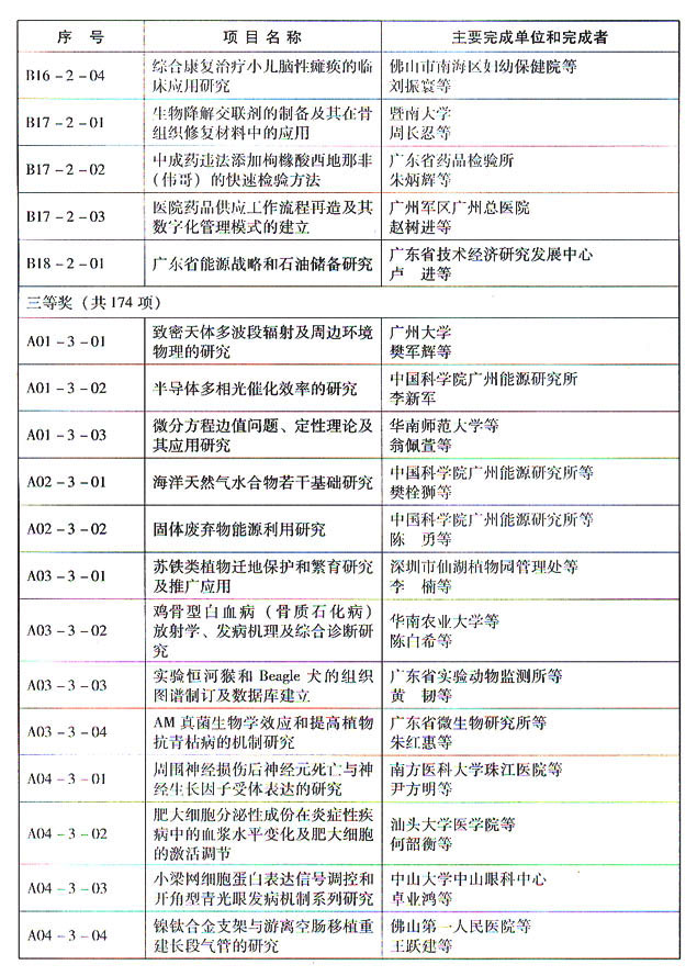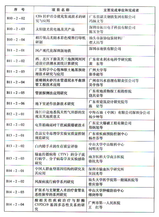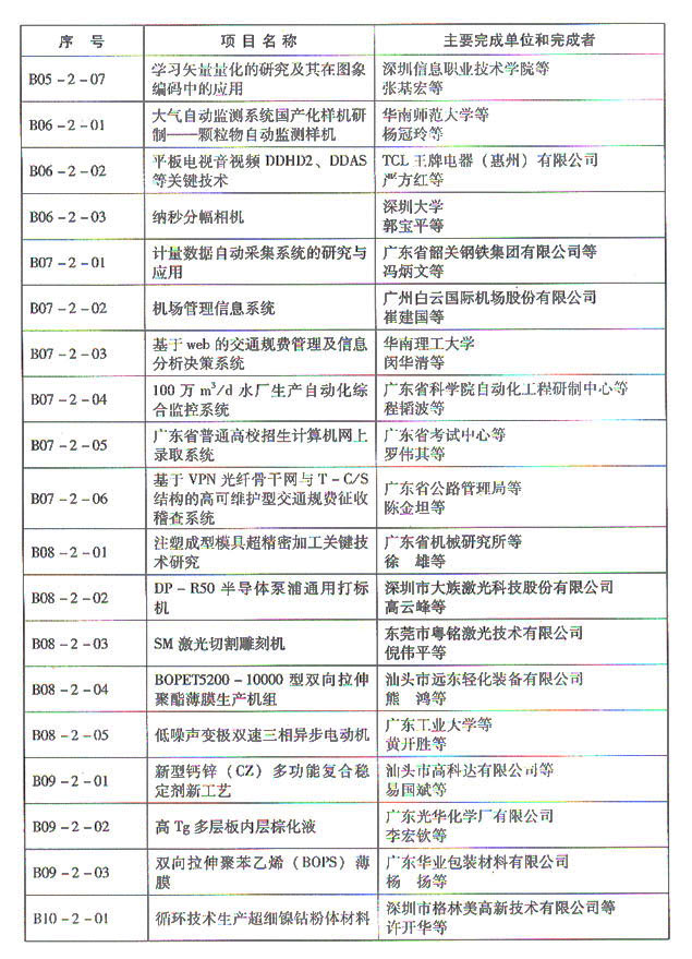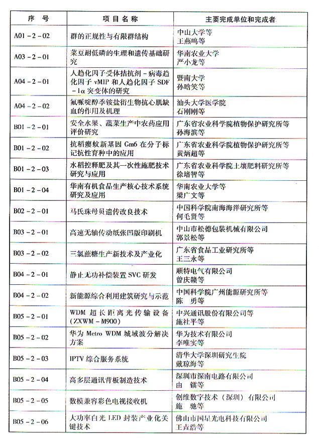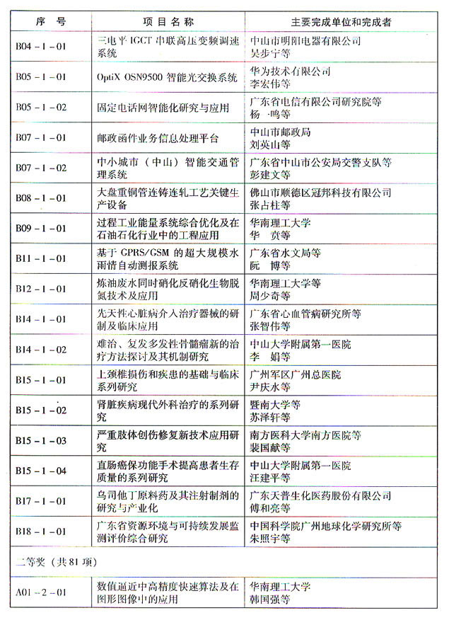 關(guān)于頒發(fā)2006年度廣東省科學(xué)技術(shù)獎的通報 各地級以上市人民政府,各縣(市、區(qū))人民政府,省政府各部門、各直屬機構(gòu):根據(jù)《廣東省科學(xué)技術(shù)獎勵辦法》的規(guī)定,授予“廣東高速公路建設(shè)科技創(chuàng)新及應(yīng)用”和“深圳市區(qū)域科技創(chuàng)新體系建設(shè)”兩項科學(xué)技術(shù)成果廣東省科學(xué)技術(shù)獎特等獎;授予“動力學(xué)系統(tǒng)反饋設(shè)計與辨識的智能與優(yōu)化方法”等31項科學(xué)技術(shù)成果廣東省科學(xué)技術(shù)獎一等獎;授予“數(shù)值逼近中高精度快速算法及在圖形圖像中的應(yīng)用”等81項科學(xué)技術(shù)成果廣東省科學(xué)技術(shù)獎二等獎;授予“致密天體多波段輻射及周邊環(huán)境物理的研究”等174項科學(xué)技術(shù)成果廣東省科學(xué)技術(shù)獎三等獎(獲獎名單附后)。 希望獲獎單位和獲獎?wù)呓潋溄湓辏^續(xù)努力,再攀高峰;希望各地、各部門和廣大科技工作者虛心向獲獎單位和獲獎人員學(xué)習(xí),積極進取、刻苦鉆研、求真務(wù)實、開拓創(chuàng)新,不斷提高自主創(chuàng)新能力,加快推進科學(xué)技術(shù)成果的轉(zhuǎn)化,為進一步推動我省產(chǎn)業(yè)結(jié)構(gòu)優(yōu)化升級,全面提高綜合競爭力,促進經(jīng)濟社會又好又快發(fā)展作出更大貢獻。 附件:2006年度廣東省科學(xué)技術(shù)獎獲獎名單 廣東省人民政府 二○○七年七月十七日