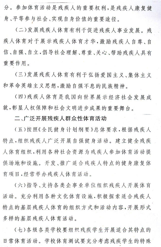 殘疾人體育工作意見的通知