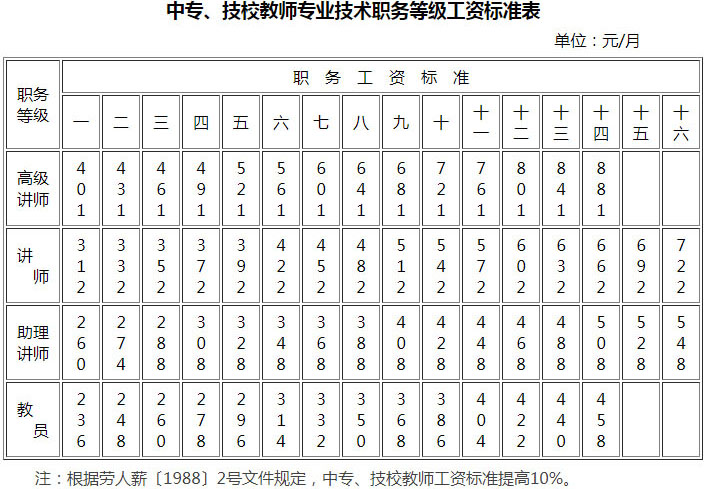 從1999年7月1日起,將機關行政人員基礎工資標準由每人每月110元提高到180元,級別工資標準由十五級至一級每人每月55元至470元提高到85元至720元(調整后的工資標準見附表一)。