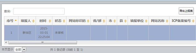 (五)導出打印。 組織單位可使用系統(tǒng)“導出上報表”功能,導出政府網(wǎng)站和欄目(系統(tǒng))基本信息,并生成excel文件格式的上報表,打印簽字蓋章后呈報上級組織單位。
