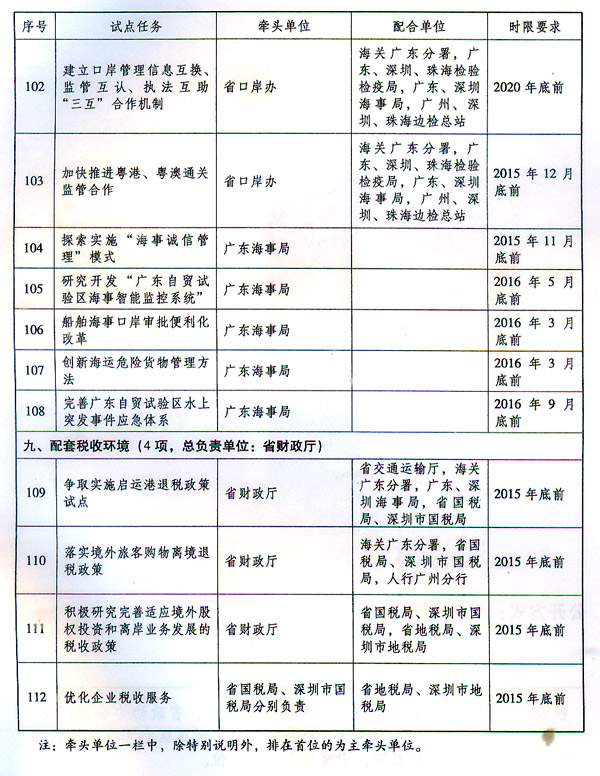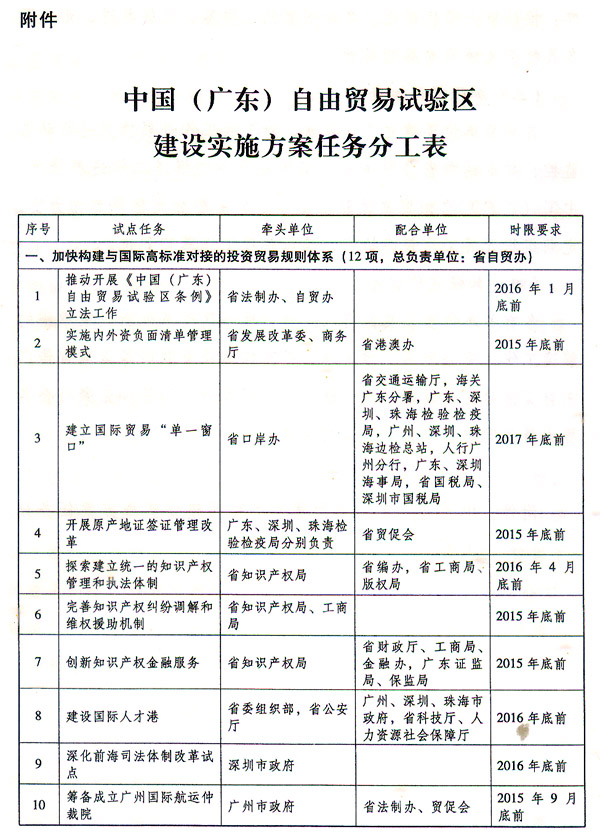 附件:中國(guó)(廣東)自由貿(mào)易試驗(yàn)區(qū)建設(shè)實(shí)施方案任務(wù)分工表