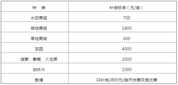 二、青苗補償費標準(青苗補償特殊個案由兩區政府酌情處理;同一地塊內套種兩種以上作物的,只對其中一種作物進行補償)